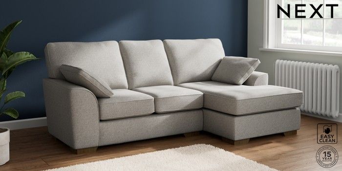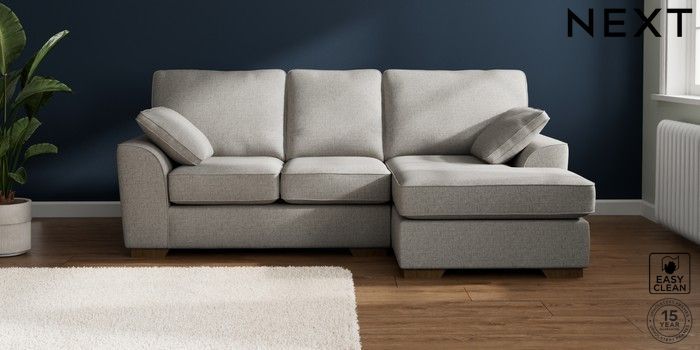 7.2.10 Stamford Small Sofa Chaise - Right Hand Woven Chenille Easy Clean Light Grey Large Square Angle - Mid | Made Click here to use our website with more accessibility support, for example screen readers
