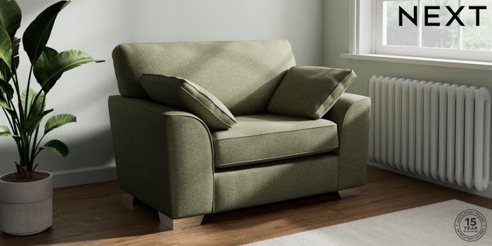 7.2.10 Stamford Snuggle Tweedy Chenille Mid Moss Green Large Square Angle - Chrome Metal | Made Click here to use our website with more accessibility support, for example screen readers