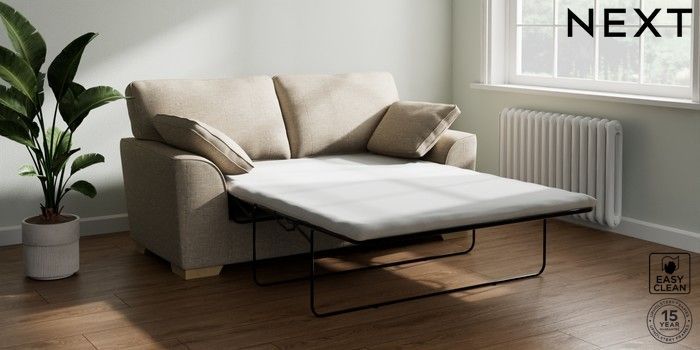 7.2.10 Stamford Sofa Bed Boucle Weave Easy Clean Dark Natural Large Square Angle - Light | Made Click here to use our website with more accessibility support, for example screen readers