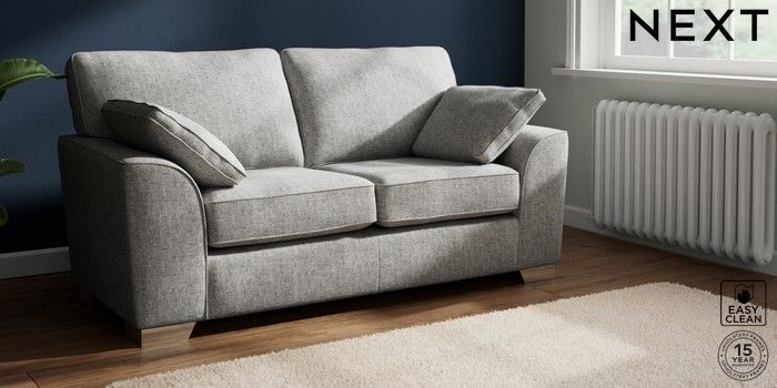 7.2.10 Stamford Sofa Bed Chunky Boucle Easy Clean Light Grey Large Square Angle - Chrome Metal | Made Click here to use our website with more accessibility support, for example screen readers