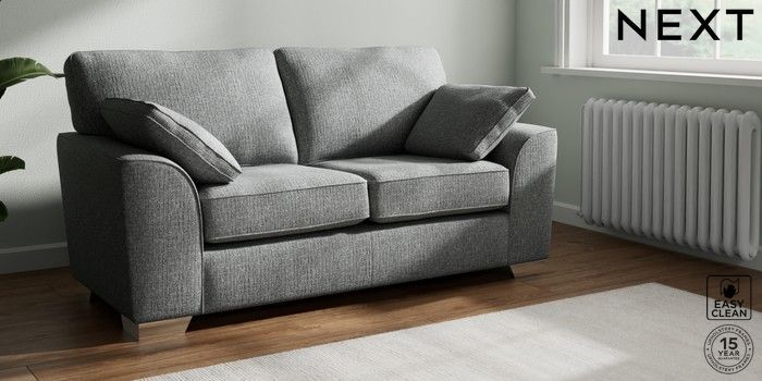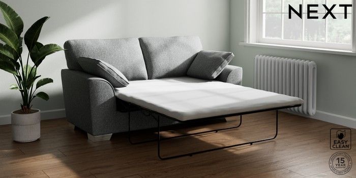 7.2.10 Stamford Sofa Bed Chunky Boucle Easy Clean Mid Grey Large Square Angle - Chrome Metal | Made Click here to use our website with more accessibility support, for example screen readers