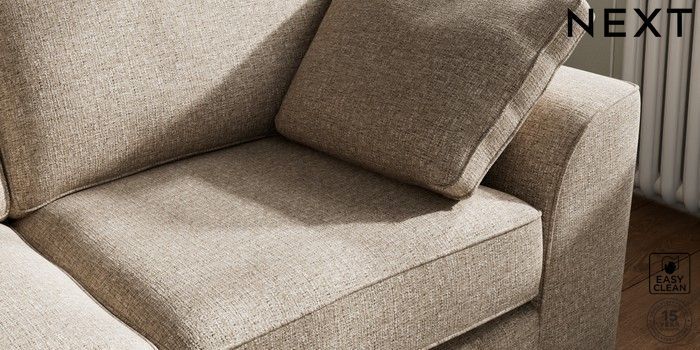 A chunky, hardwearing fabric with a timeless look which can tackle most household stains by blotting or gently wiping the fabric with water and a mild detergent. This Fabric is covered by the Quality Fabric Kitemark