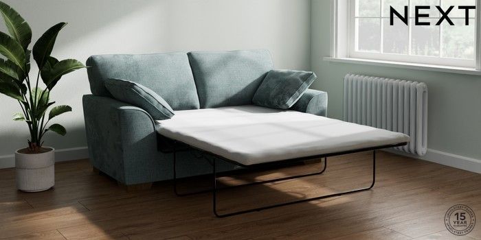 7.2.10 Stamford Sofa Bed Chunky Chenille Light Teal Green Large Square Angle - Mid | Made Click here to use our website with more accessibility support, for example screen readers