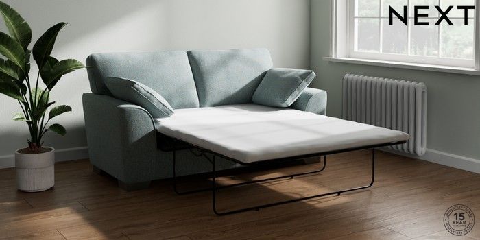 7.2.10 Stamford Sofa Bed Chunky Marl Mid Blue Large Square Angle - Gunmetal | Made Click here to use our website with more accessibility support, for example screen readers