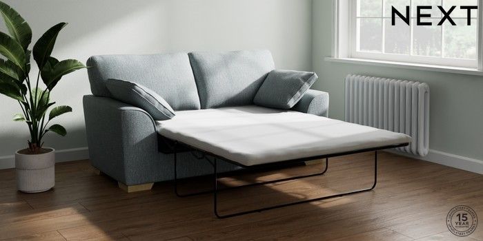 7.2.10 Stamford Sofa Bed Chunky Weave Mid Blue Large Square Angle - Light | Made Click here to use our website with more accessibility support, for example screen readers