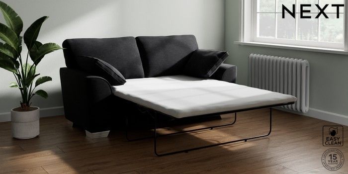7.2.10 Stamford Sofa Bed Fine Chenille Easy Clean Black Large Square Angle - Chrome Metal | Made Click here to use our website with more accessibility support, for example screen readers