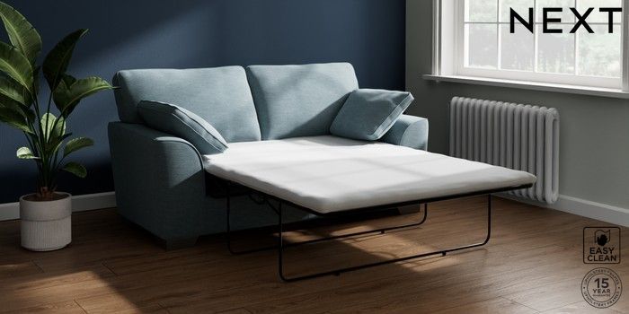 7.2.10 Stamford Sofa Bed Fine Chenille Easy Clean Mid Blue Large Square Angle - Gunmetal | Made Click here to use our website with more accessibility support, for example screen readers