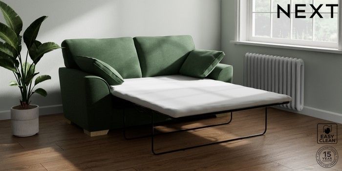 7.2.10 Stamford Sofa Bed Fine Chenille Easy Clean Mid Khaki Green Large Square Angle - Light | Made Click here to use our website with more accessibility support, for example screen readers