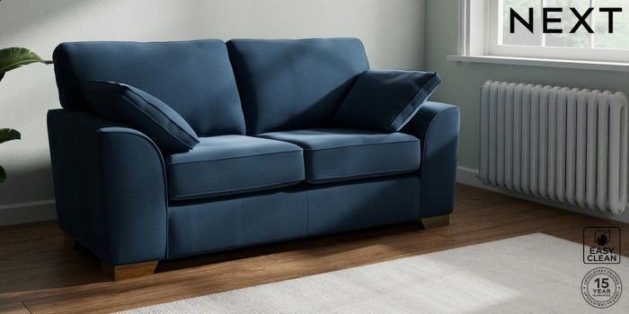 7.2.10 Stamford Sofa Bed Plush Velvet Easy Clean Airforce Blue Large Square Angle - Brushed Brass | Made Click here to use our website with more accessibility support, for example screen readers