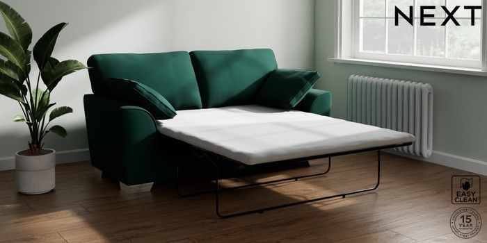 7.2.10 Stamford Sofa Bed Plush Velvet Easy Clean Bottle Green Large Square Angle - Chrome Metal | Made Click here to use our website with more accessibility support, for example screen readers