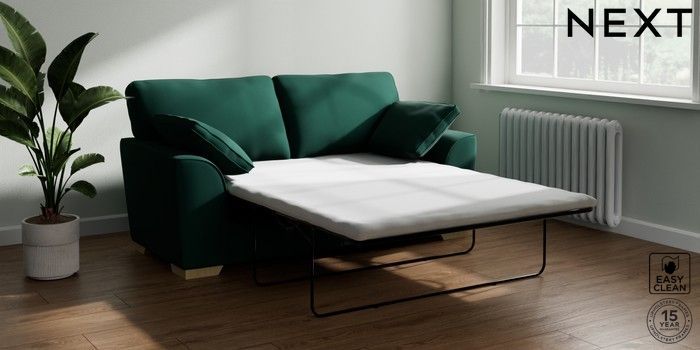 7.2.10 Stamford Sofa Bed Plush Velvet Easy Clean Bottle Green Large Square Angle - Light | Made Click here to use our website with more accessibility support, for example screen readers