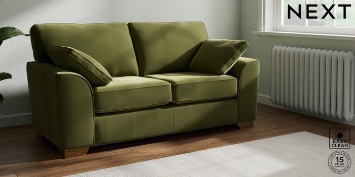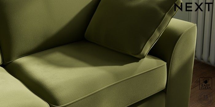 7.2.10 Stamford Sofa Bed Plush Velvet Easy Clean Mid Olive Green Large Square Angle - Brushed Brass | Made Click here to use our website with more accessibility support, for example screen readers