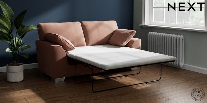 7.2.10 Stamford Sofa Bed Relaxed Linen Look Light Rust Brown Large Square Angle - Chrome Metal | Made Click here to use our website with more accessibility support, for example screen readers