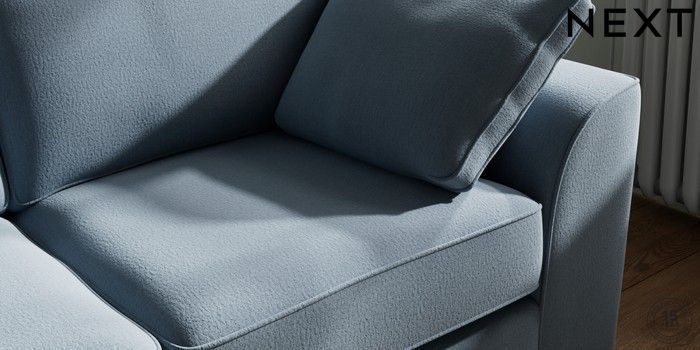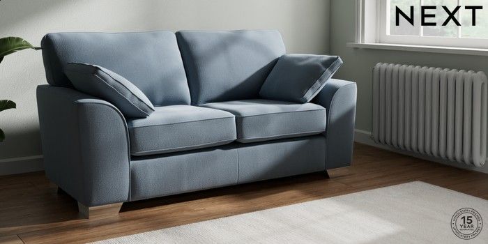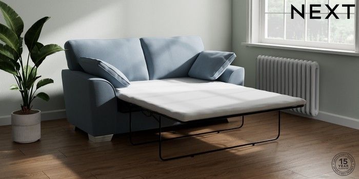 7.2.10 Stamford Sofa Bed Relaxed Linen Look Mid Blue Large Square Angle - Chrome Metal | Made Click here to use our website with more accessibility support, for example screen readers