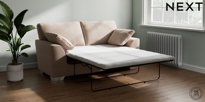 7.2.10 Stamford Sofa Bed Relaxed Linen Look Mid Natural Large Square Angle - Chrome Metal | Made Click here to use our website with more accessibility support, for example screen readers