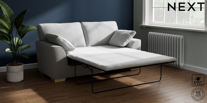 7.2.10 Stamford Sofa Bed Tweedy Blend Easy Clean Light Silver Grey Large Square Angle - Light | Made Click here to use our website with more accessibility support, for example screen readers