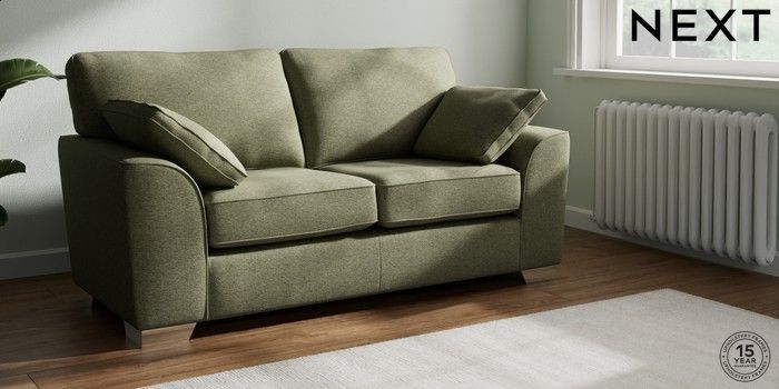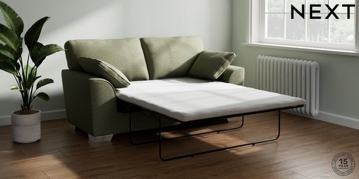 7.2.10 Stamford Sofa Bed Tweedy Chenille Mid Moss Green Large Square Angle - Chrome Metal | Made Click here to use our website with more accessibility support, for example screen readers