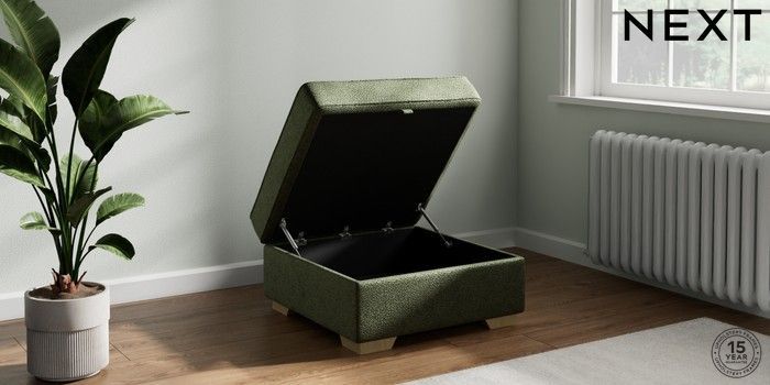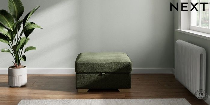 7.2.10 Stamford Storage Footstool Boucle Chenille Dark Moss Green Square Angle - Light | Made Click here to use our website with more accessibility support, for example screen readers