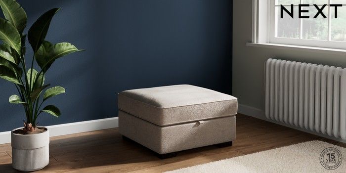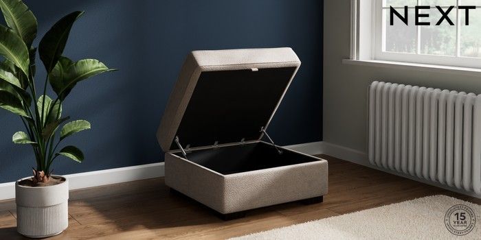 7.2.10 Stamford Storage Footstool Boucle Chenille Light Natural Square Angle - Dark | Made Click here to use our website with more accessibility support, for example screen readers