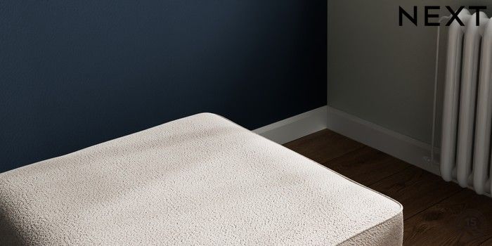 7.2.10 Stamford Storage Footstool Boucle Chenille Light Natural Square Angle - Light | Made Click here to use our website with more accessibility support, for example screen readers