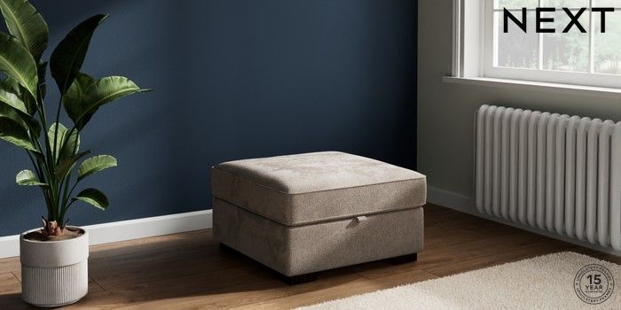 7.2.10 Stamford Storage Footstool Chunky Chenille Light Dove Square Angle - Dark | Made Click here to use our website with more accessibility support, for example screen readers