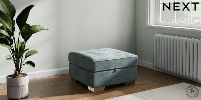7.2.10 Stamford Storage Footstool Chunky Chenille Light Teal Green Square Angle - Brushed Brass | Made Click here to use our website with more accessibility support, for example screen readers