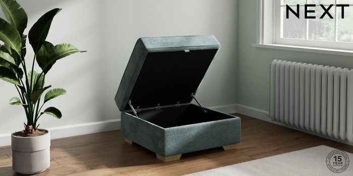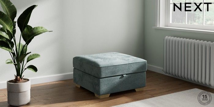 7.2.10 Stamford Storage Footstool Chunky Chenille Light Teal Green Square Angle - Light | Made Click here to use our website with more accessibility support, for example screen readers