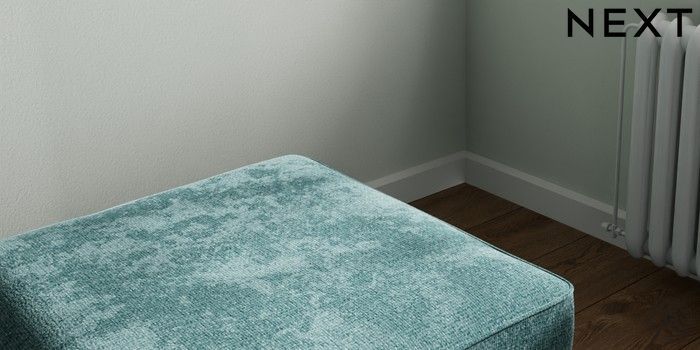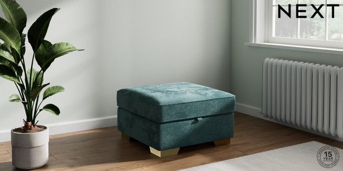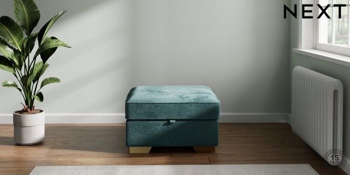 7.2.10 Stamford Storage Footstool Chunky Chenille Mid Teal Green Square Angle - Brushed Brass | Made Click here to use our website with more accessibility support, for example screen readers
