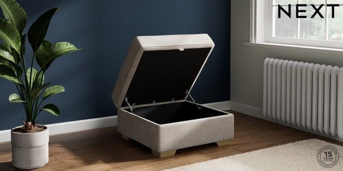 7.2.10 Stamford Storage Footstool Chunky Chenille Oyster Square Angle - Light | Made Click here to use our website with more accessibility support, for example screen readers