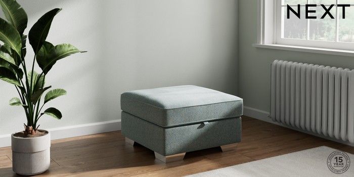7.2.10 Stamford Storage Footstool Chunky Marl Mid Blue Square Angle - Chrome Metal | Made Click here to use our website with more accessibility support, for example screen readers