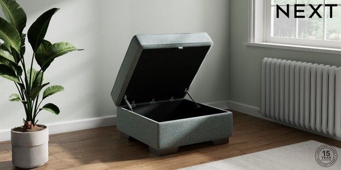 7.2.10 Stamford Storage Footstool Chunky Marl Mid Blue Square Angle - Gunmetal | Made Click here to use our website with more accessibility support, for example screen readers