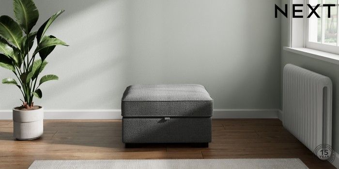 7.2.10 Stamford Storage Footstool Chunky Texture Dark Grey Square Angle - Dark | Made Click here to use our website with more accessibility support, for example screen readers