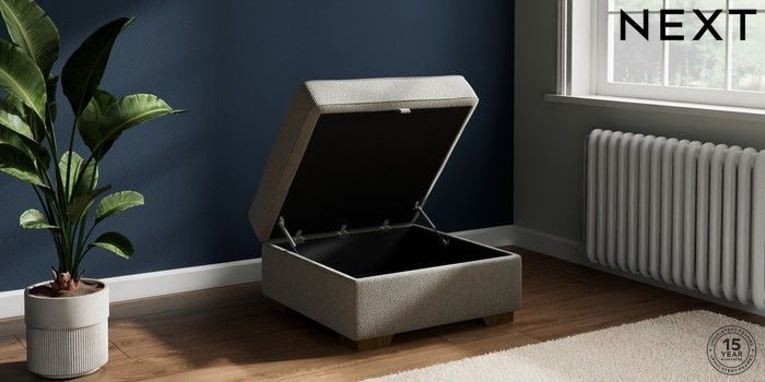 7.2.10 Stamford Storage Footstool Chunky Texture Dove Square Angle - Mid | Made Click here to use our website with more accessibility support, for example screen readers