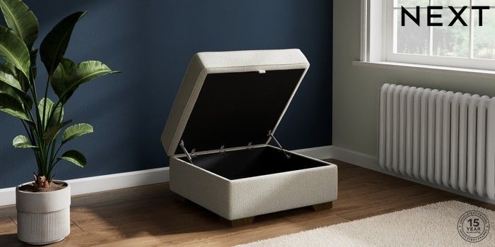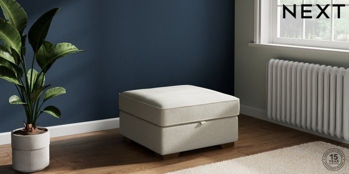 7.2.10 Stamford Storage Footstool Chunky Texture Oyster Square Angle - Mid | Made Click here to use our website with more accessibility support, for example screen readers