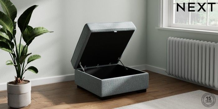 7.2.10 Stamford Storage Footstool Chunky Weave Mid Blue Square Angle - Dark | Made Click here to use our website with more accessibility support, for example screen readers