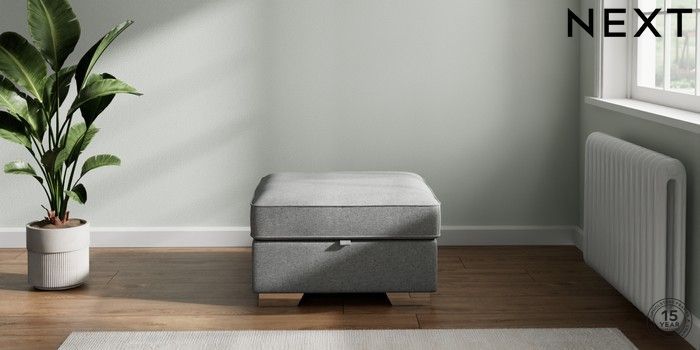 7.2.10 Stamford Storage Footstool Chunky Weave Mid Grey Square Angle - Chrome Metal | Made Click here to use our website with more accessibility support, for example screen readers