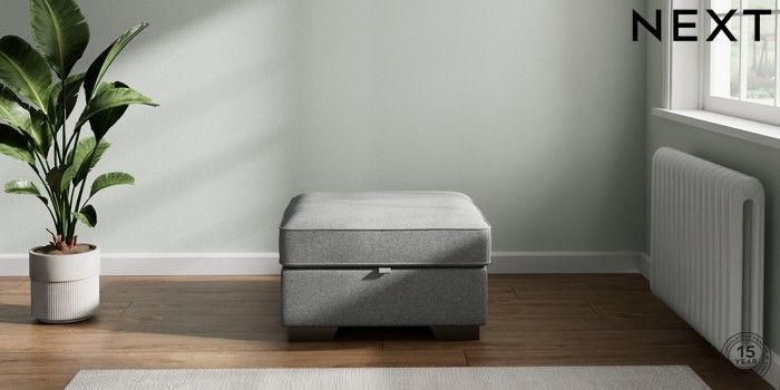 7.2.10 Stamford Storage Footstool Chunky Weave Mid Grey Square Angle - Gunmetal | Made Click here to use our website with more accessibility support, for example screen readers
