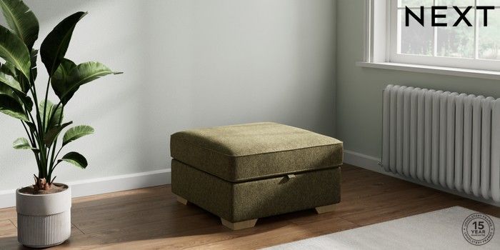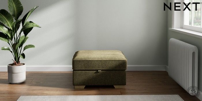 7.2.10 Stamford Storage Footstool Cotswold Chenille Dark Green Square Angle - Light | Made Click here to use our website with more accessibility support, for example screen readers
