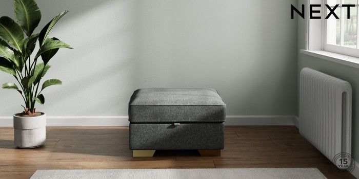 7.2.10 Stamford Storage Footstool Cotswold Chenille Dark Grey Square Angle - Brushed Brass | Made Click here to use our website with more accessibility support, for example screen readers
