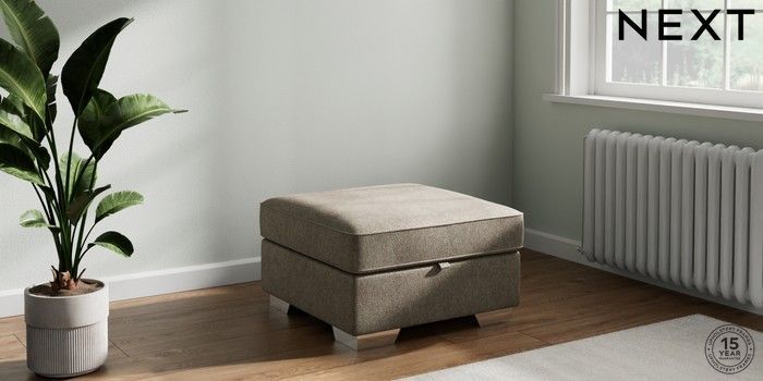 7.2.10 Stamford Storage Footstool Cotswold Chenille Mid Mink Brown Square Angle - Chrome Metal | Made Click here to use our website with more accessibility support, for example screen readers