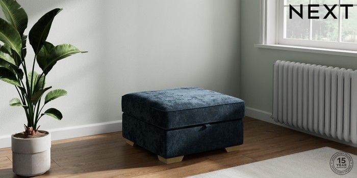 7.2.10 Stamford Storage Footstool Distressed Velour Midnight Blue Square Angle - Light | Made Click here to use our website with more accessibility support, for example screen readers
