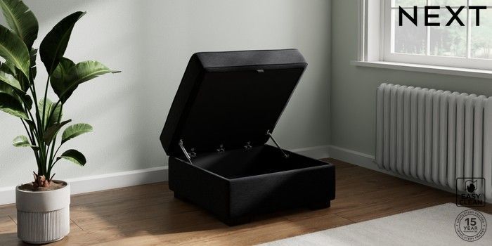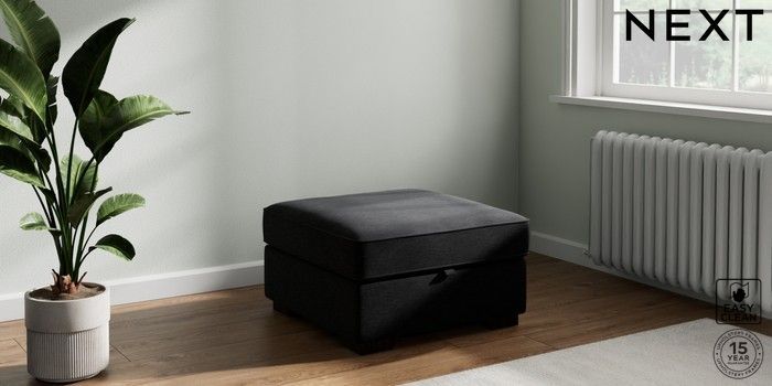 7.2.10 Stamford Storage Footstool Fine Chenille Easy Clean Black Square Angle - Dark | Made Click here to use our website with more accessibility support, for example screen readers