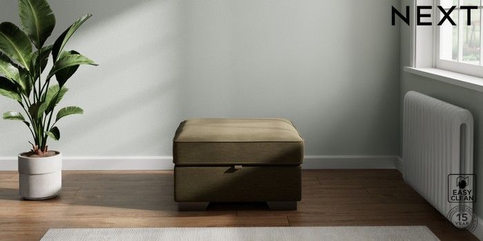 7.2.10 Stamford Storage Footstool Fine Chenille Easy Clean Dark Moss Green Square Angle - Gunmetal | Made Click here to use our website with more accessibility support, for example screen readers