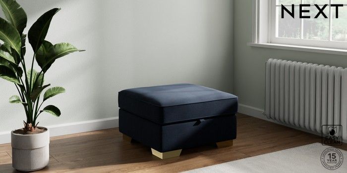 7.2.10 Stamford Storage Footstool Fine Chenille Easy Clean Dark Navy Blue Square Angle - Brushed Brass | Made Click here to use our website with more accessibility support, for example screen readers