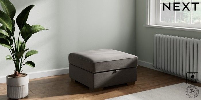7.2.10 Stamford Storage Footstool Fine Chenille Easy Clean Dark Smoke Grey Square Angle - Mid | Made Click here to use our website with more accessibility support, for example screen readers