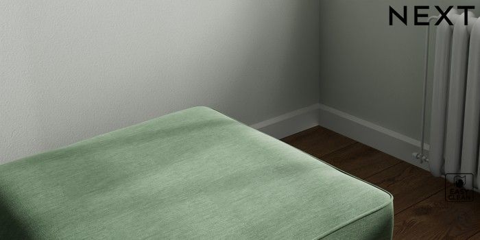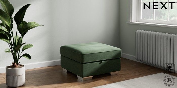 7.2.10 Stamford Storage Footstool Fine Chenille Easy Clean Mid Khaki Green Square Angle - Chrome Metal | Made Click here to use our website with more accessibility support, for example screen readers