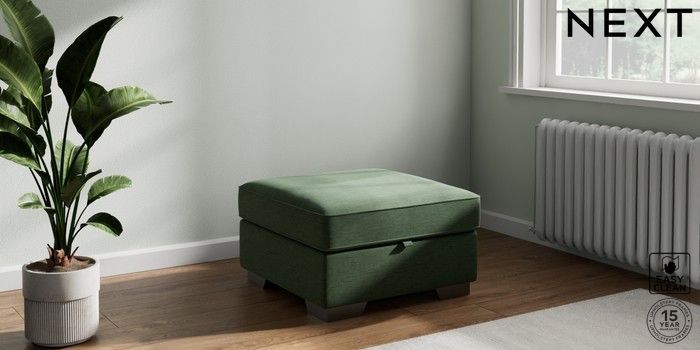 7.2.10 Stamford Storage Footstool Fine Chenille Easy Clean Mid Khaki Green Square Angle - Gunmetal | Made Click here to use our website with more accessibility support, for example screen readers