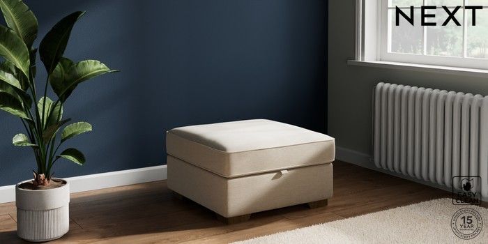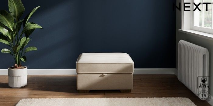 7.2.10 Stamford Storage Footstool Fine Chenille Easy Clean Oyster Square Angle - Mid | Made Click here to use our website with more accessibility support, for example screen readers