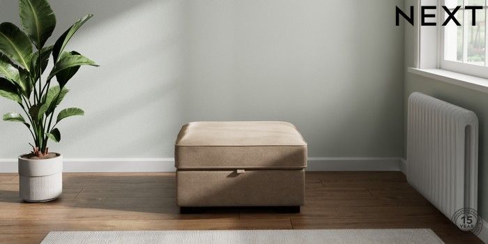7.2.10 Stamford Storage Footstool Luxe Chenille Mid Camel Beige Square Angle - Dark | Made Click here to use our website with more accessibility support, for example screen readers