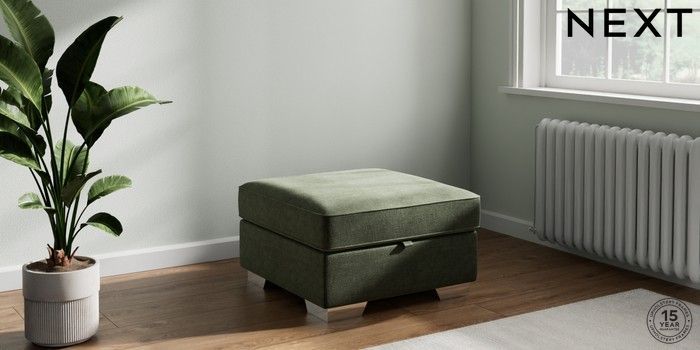 7.2.10 Stamford Storage Footstool Luxe Chenille Mid Green Square Angle - Chrome Metal | Made Click here to use our website with more accessibility support, for example screen readers